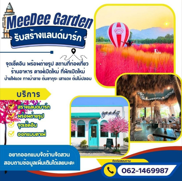 เช่น สวนบ้าน พื้นที่ร้านอาหาร พื้นที่คาเฟ่ พื้นที่camping ตลอดจนวางผังรีสอร์ท โฮมสเตย์ อุทยานสร้างแลนด์มาร์คจุดเชคอิน ไว้ต้อนรับนักท่องเที่ยว ออกแบบจัดสวนนอกสถานที่ ติดตั้งพร๊อพแบบครบวงจร